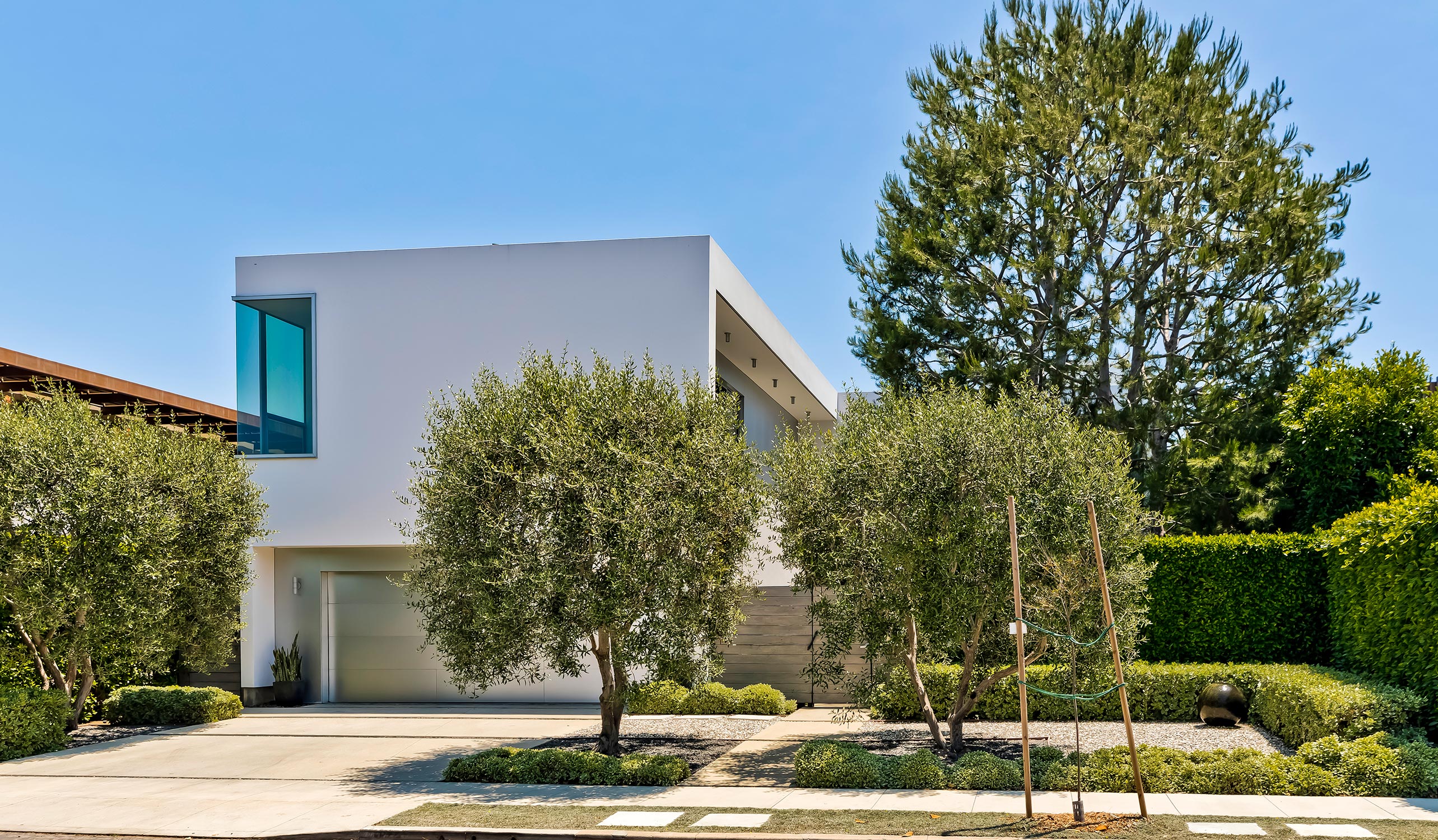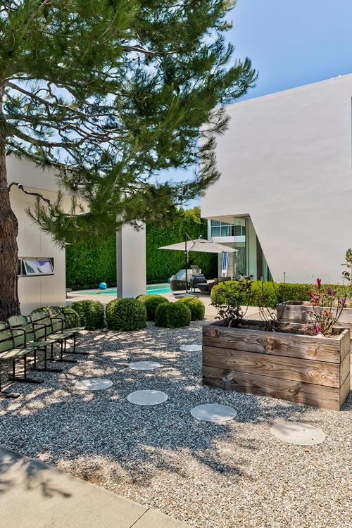 Designed meticulously by Dennis Gibbens Architects, this stunning masterpiece epitomizes California indoor/outdoor living while sparing no detail in luxury and modern amenities. Through the secure front gate is a beautiful and spacious grassy yard, a covered patio with built-in heaters and a sparkling pool & spa.The main level has floor to ceiling glass windows, radiant heated floors and stacking sliding doors seamlessly connecting the indoor area with the outdoor living and dining patios. Designed for ultimate entertaining, the formal living and dining rooms boast double height ceilings and a beautiful curved staircase. An open functional kitchen with premium appliances, a convenient butlers pantry and a striking limestone island flows into the breakfast and family room complete with custom built-ins for high-designed thoughtful storage. A second staircase leads up to three large bedroom suites and a laundry room. The stunning primary suite with a private hallway lined with custom cabinets and skylights opens to the tranquil bedroom with walls of glass and a striking ceiling feature. A beautiful marble bathroom and a large walk in closet completes this luxurious retreat. An upstairs gallery with a glass enclosed office leads to a chic media room complete with beverage center and powder room. The detached pool house is fully equipped with a kitchenette and beautiful bathroom with walk-in shower giving your guests full seclusion. Notable extras include a two car large garage with an electric car charger, solar panels and electrical and AV closets. Live the best Venice lifestyle with easy access to Abbot Kinney, shopping, dining and the beach.